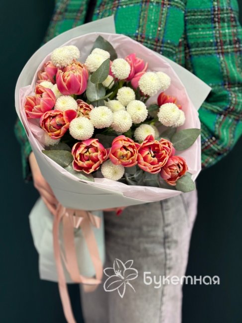 собрали очень нежную композицию, а главное все цветы свежие, доставки всегда вовремя. Я определенно еще вернусь - ждите)))