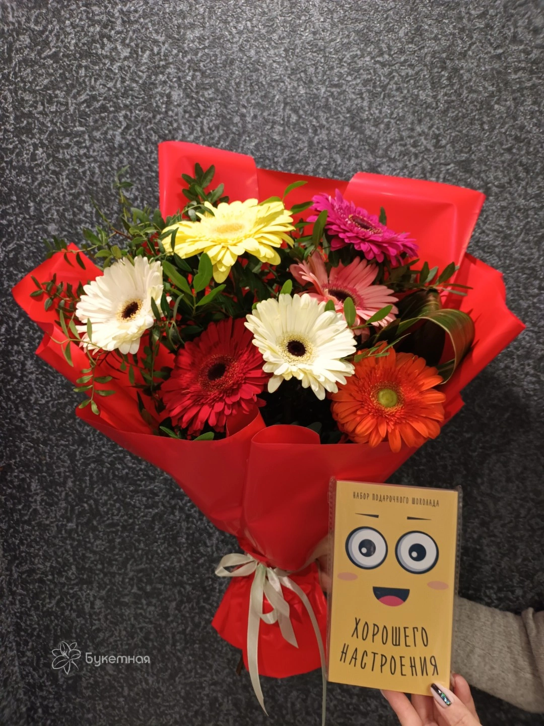 Букет с шоколадкой для хорошего настроения!