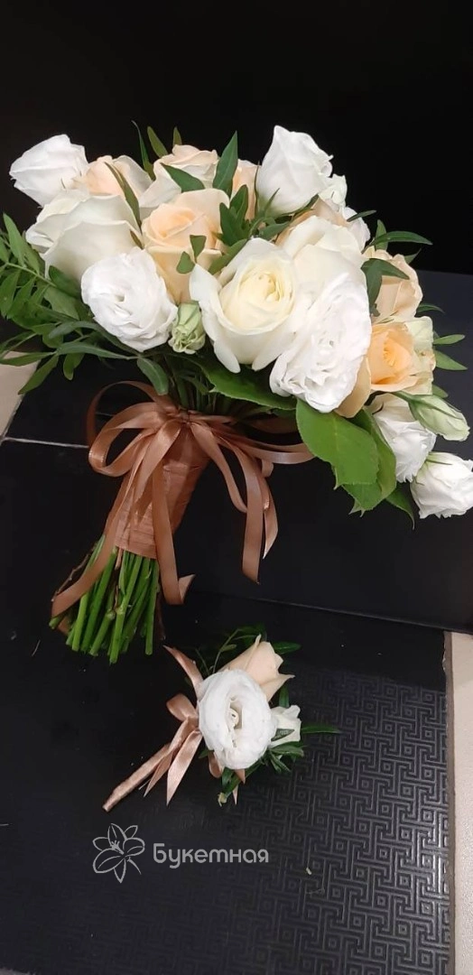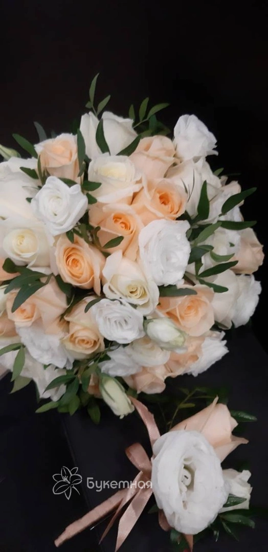 Свадебный букет «Волшебный миг», выполненный в ярких тонах, выгодно подчеркнет невесту и ее изысканный вкус.