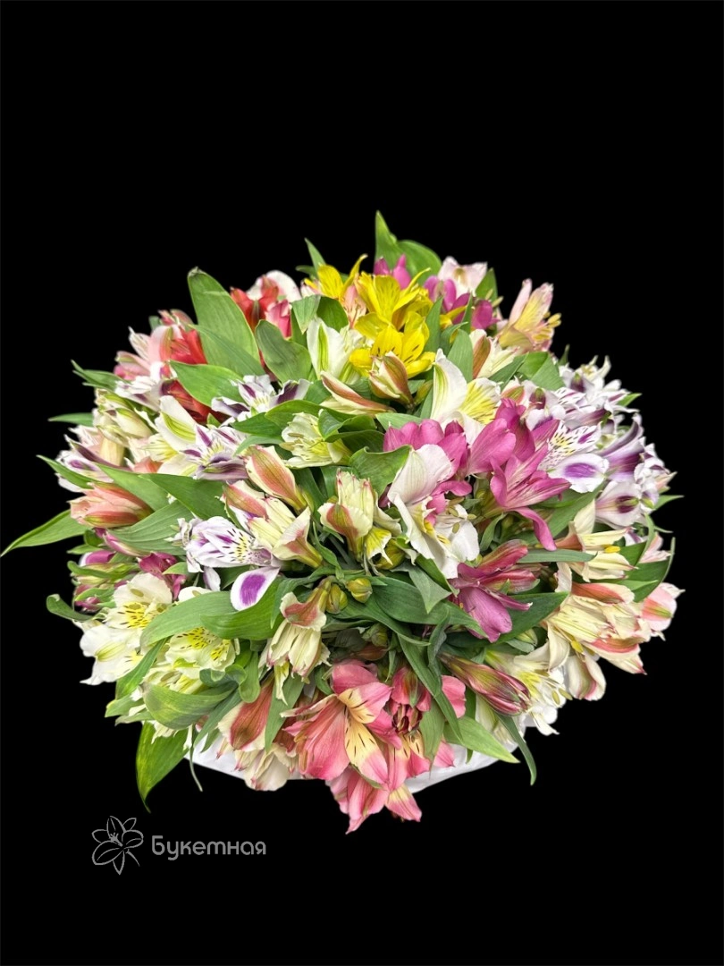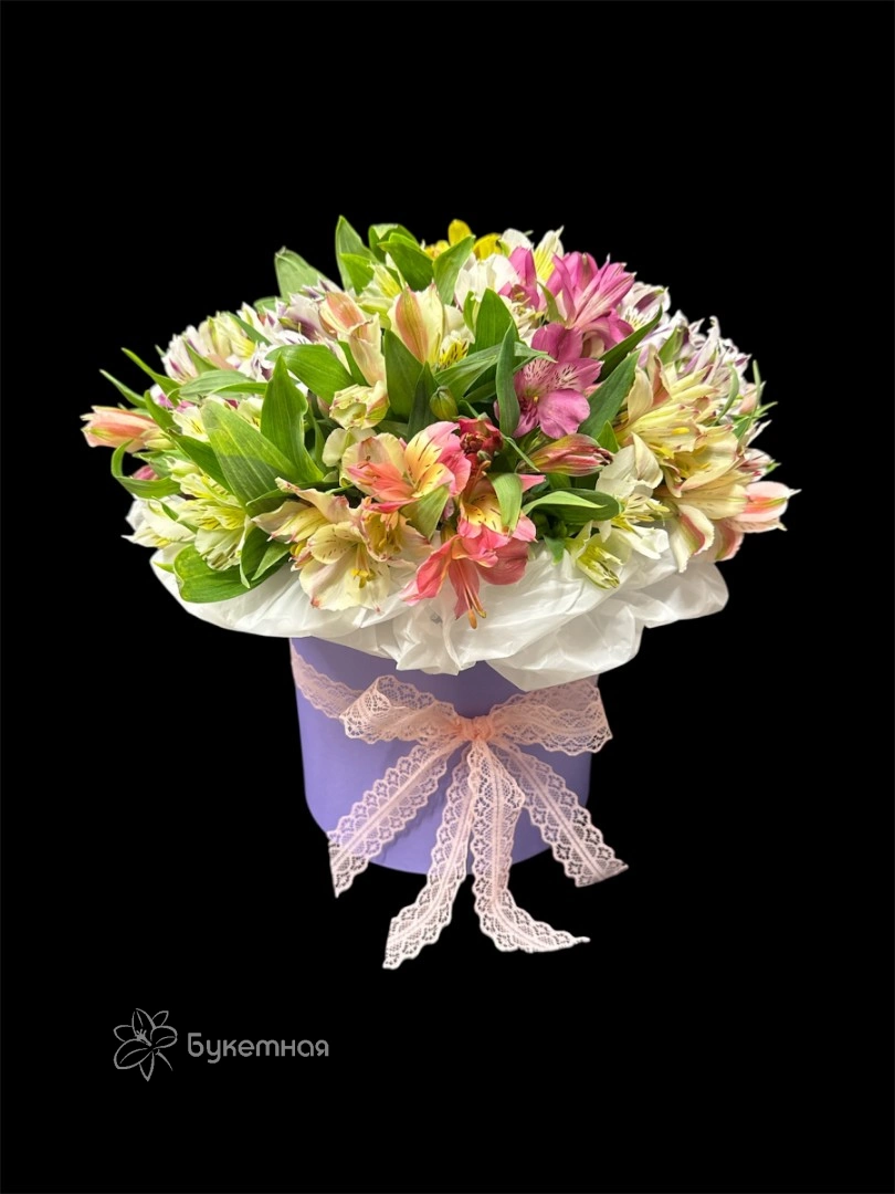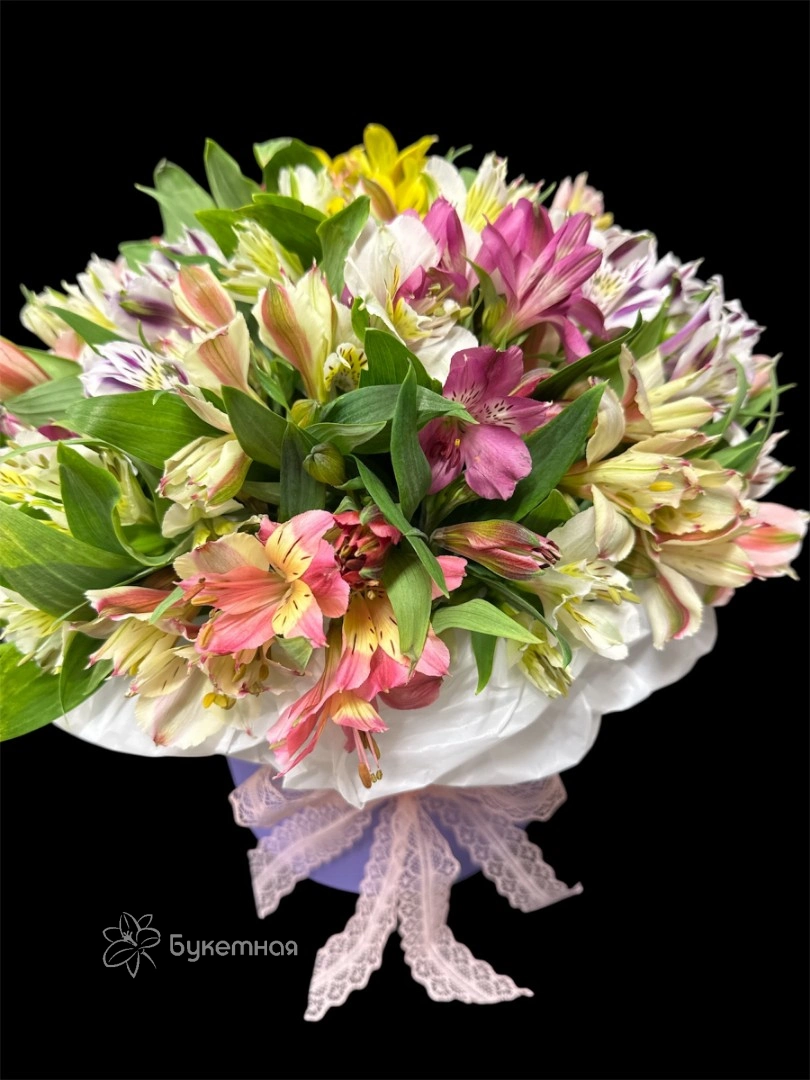 Цвет альстромерии и коробки обязательно согласуем с заказчиком исходя из наличия и повода