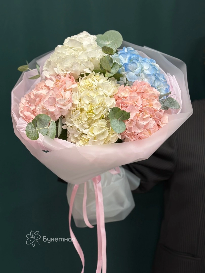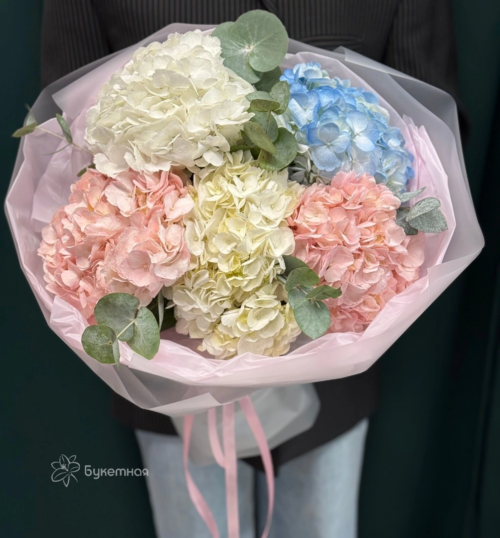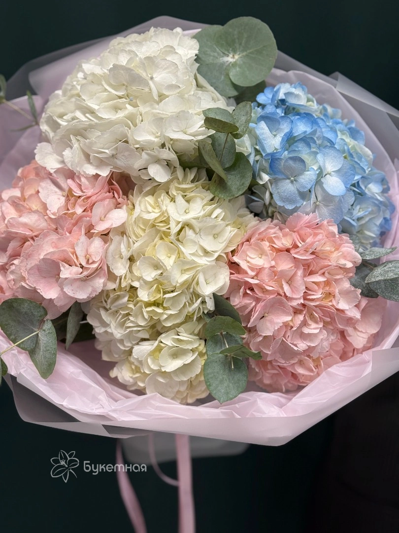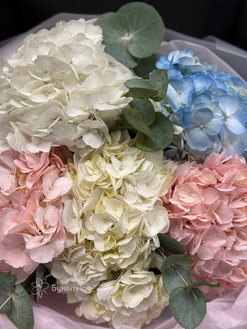 ГлавнаяКаталогБукетыС гортензиейБукет «Зефирные гортензии»