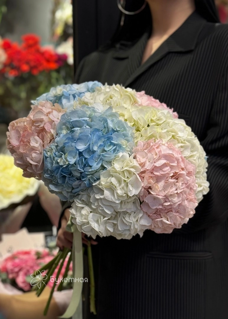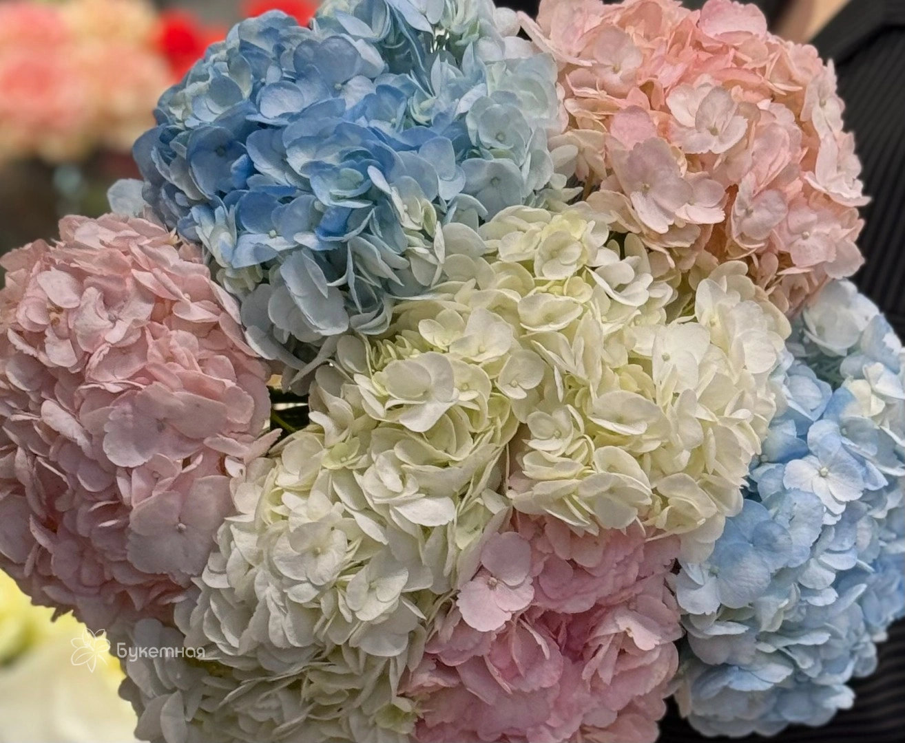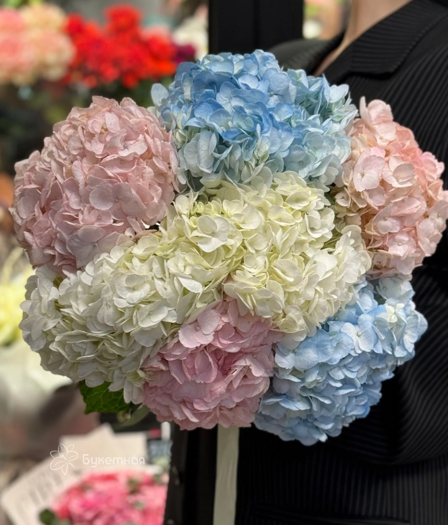 Букет из разноцветных шапок гортензий 7 шт, порадует своей красотой и изысканностью !