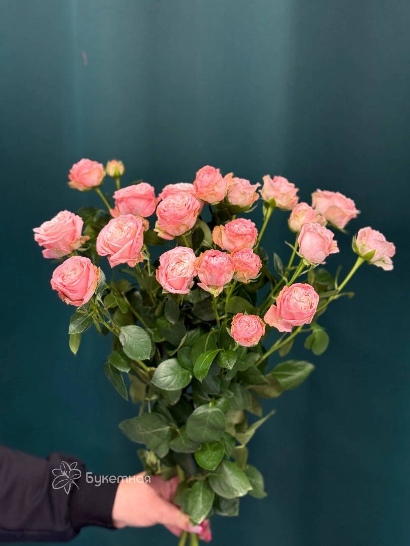 Кустовая пионовидная роза Бомбастик — махровые шаровидные бутоны с многочисленными слоями лепестков. Эти цветы обладают невероятно изысканным цветом — светлый кремовым с мягким розовым оттенком.