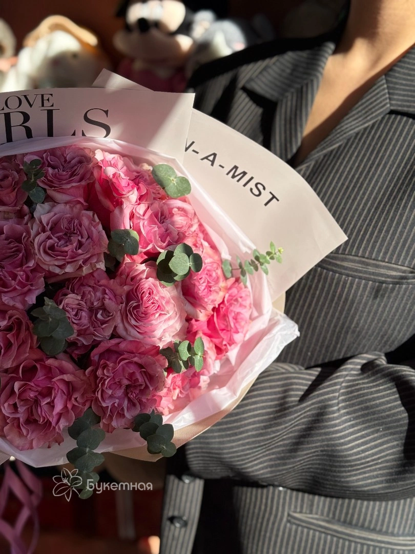 ГлавнаяКаталогРозыРозовыеБукет «Кантри Блюз с эвкалиптом»