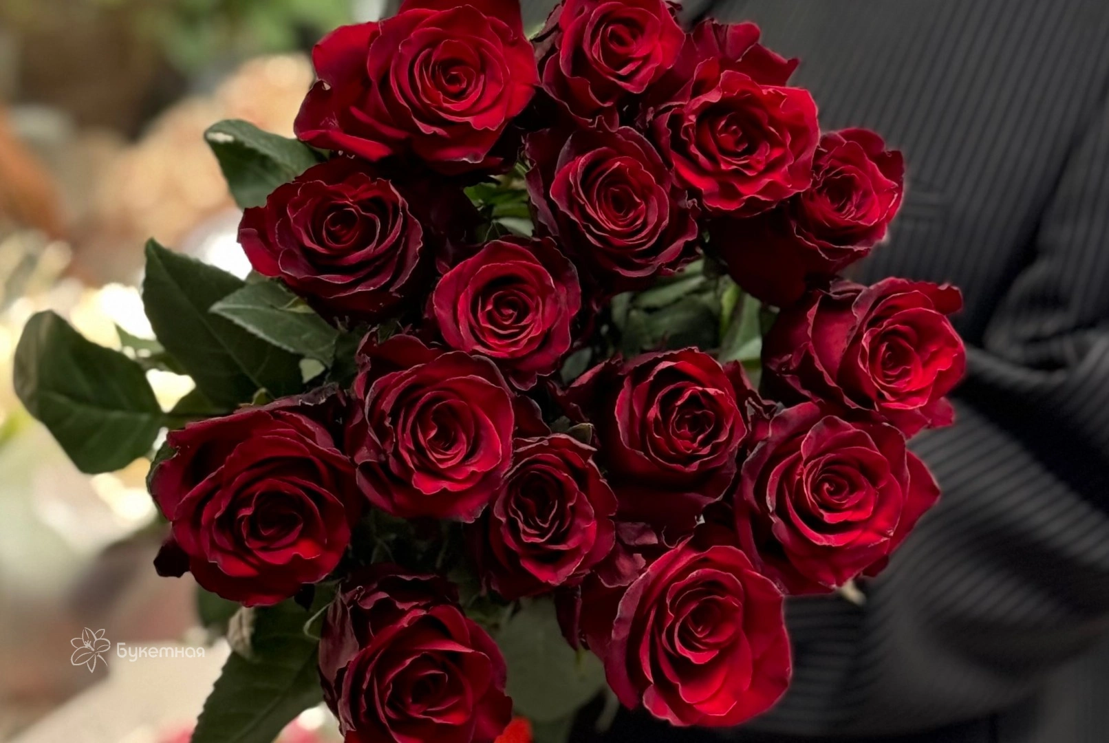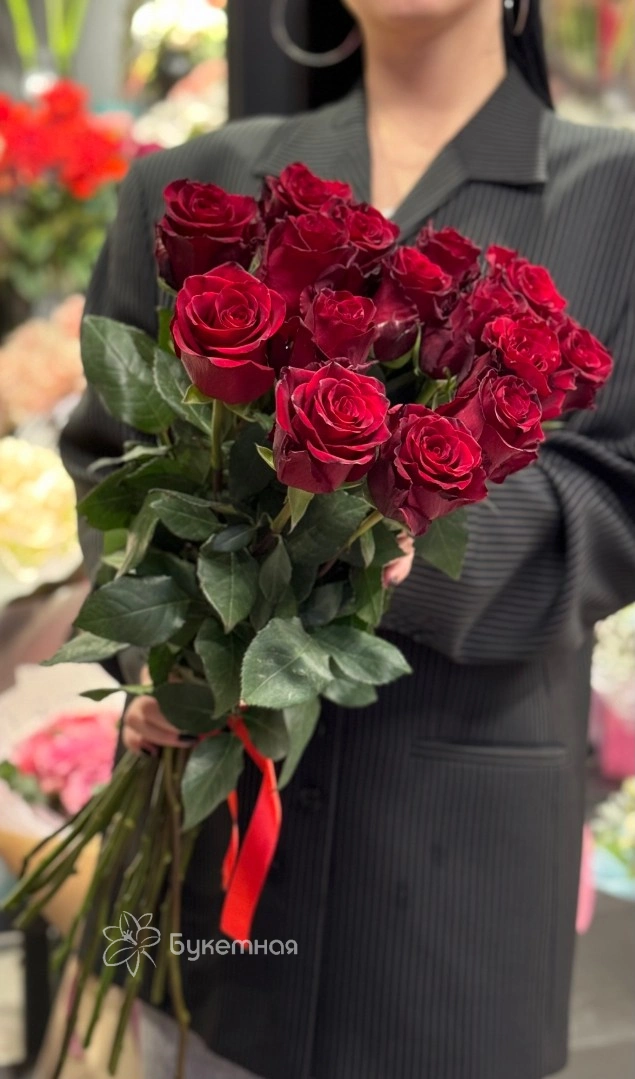 Букет из 15 роз 80 см под ленту.