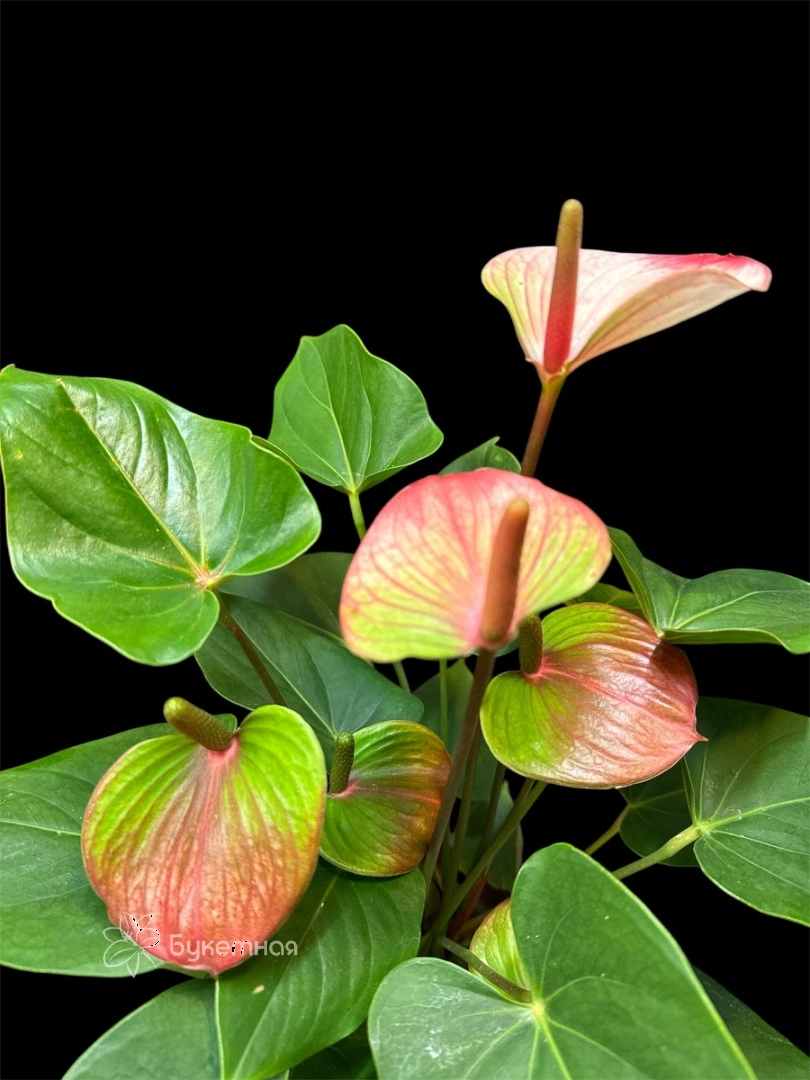 Кустистые крупномерные растения высотой 0,8 м с прямостоячим желтоватым початком и крупным глянцевитым покрывалом.