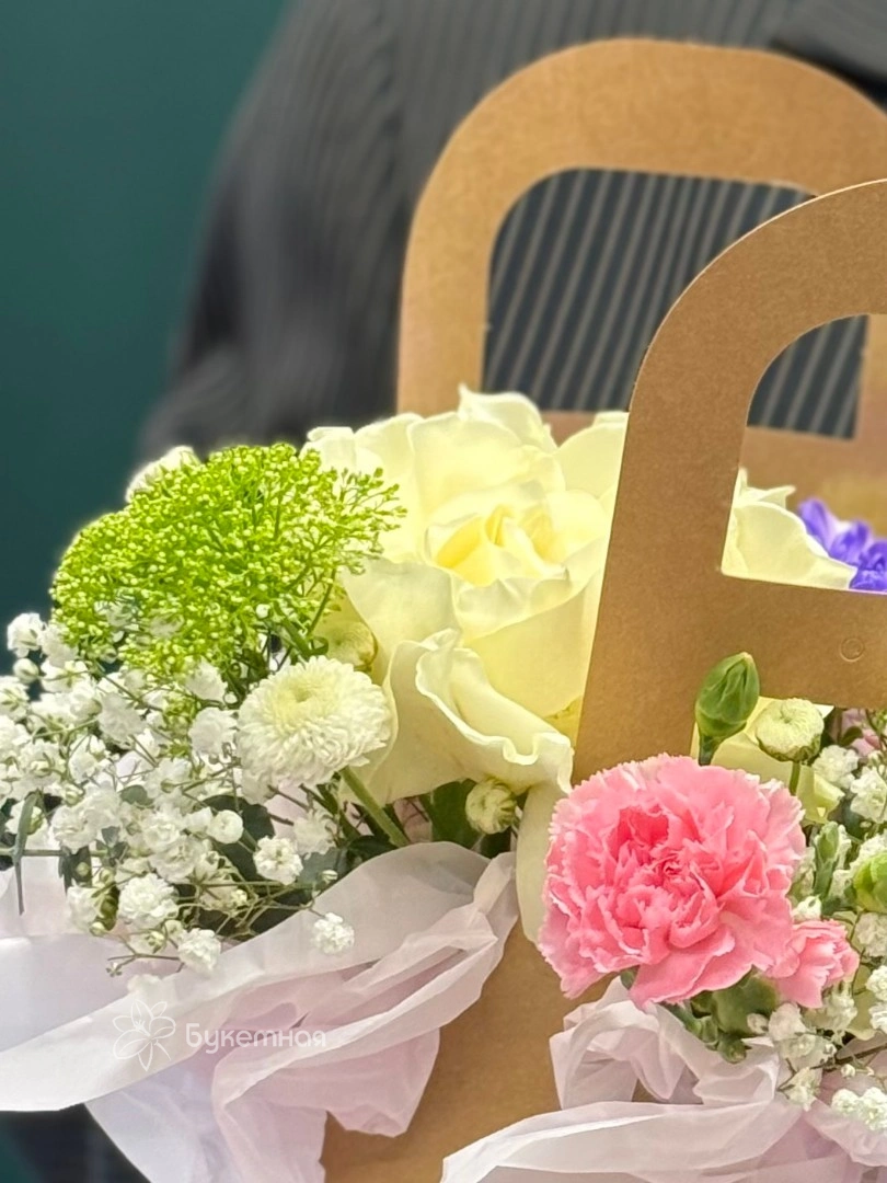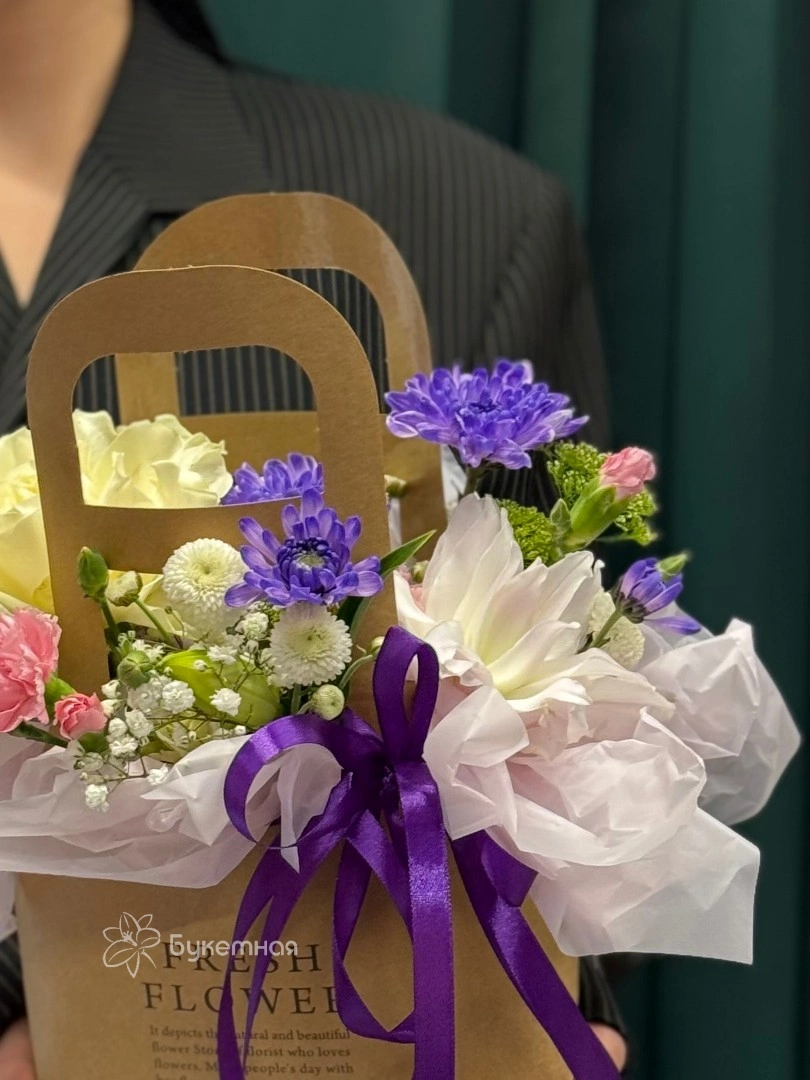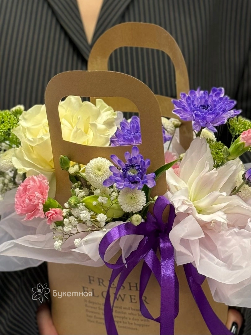 ГлавнаяКаталогКомпозицииВ сумочкеКрафтовая сумочка «Ланетт»