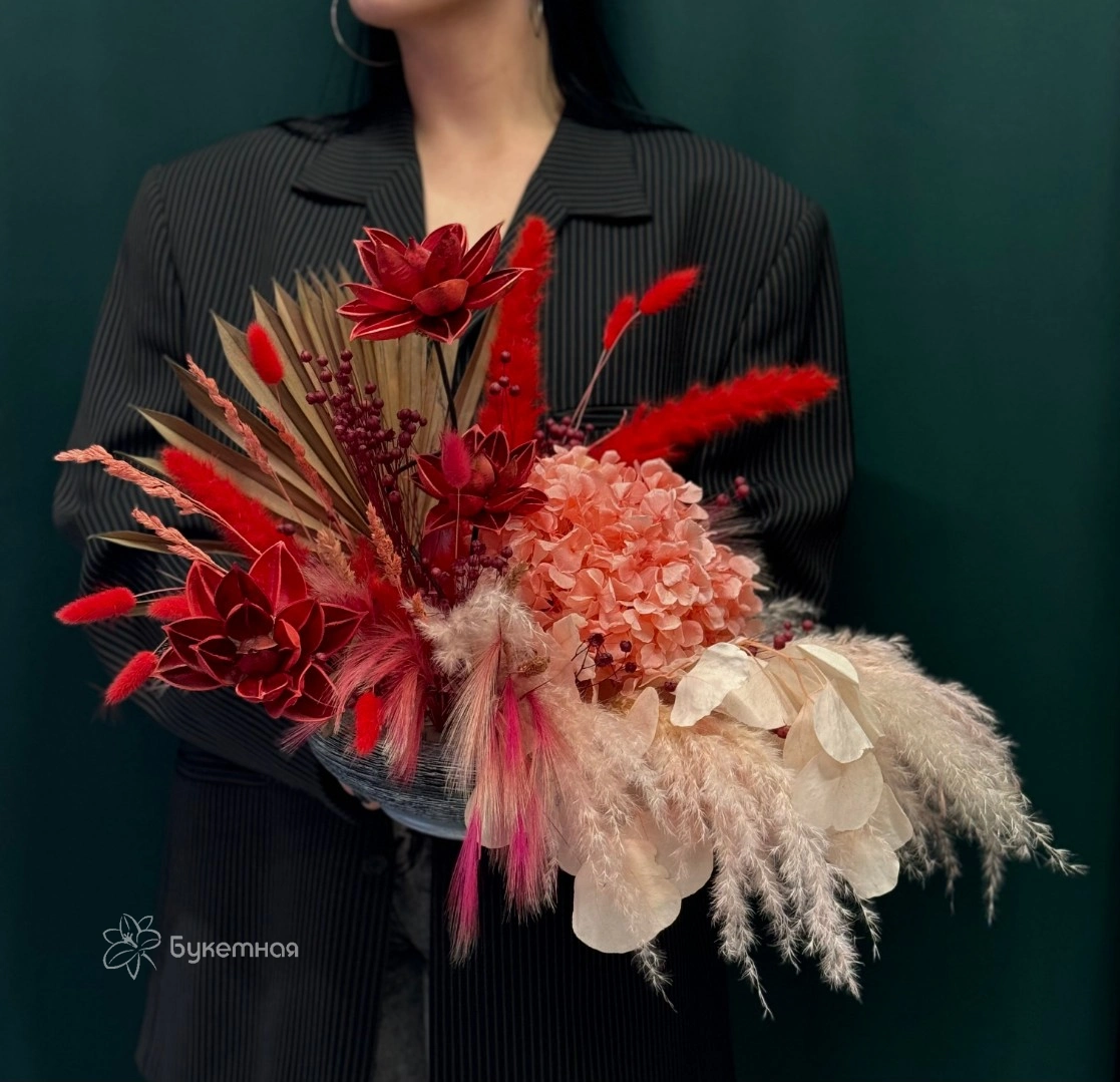 ГлавнаяКаталогКомпозицииКомпозиции из сухоцветовКомпозиция «Лотос»