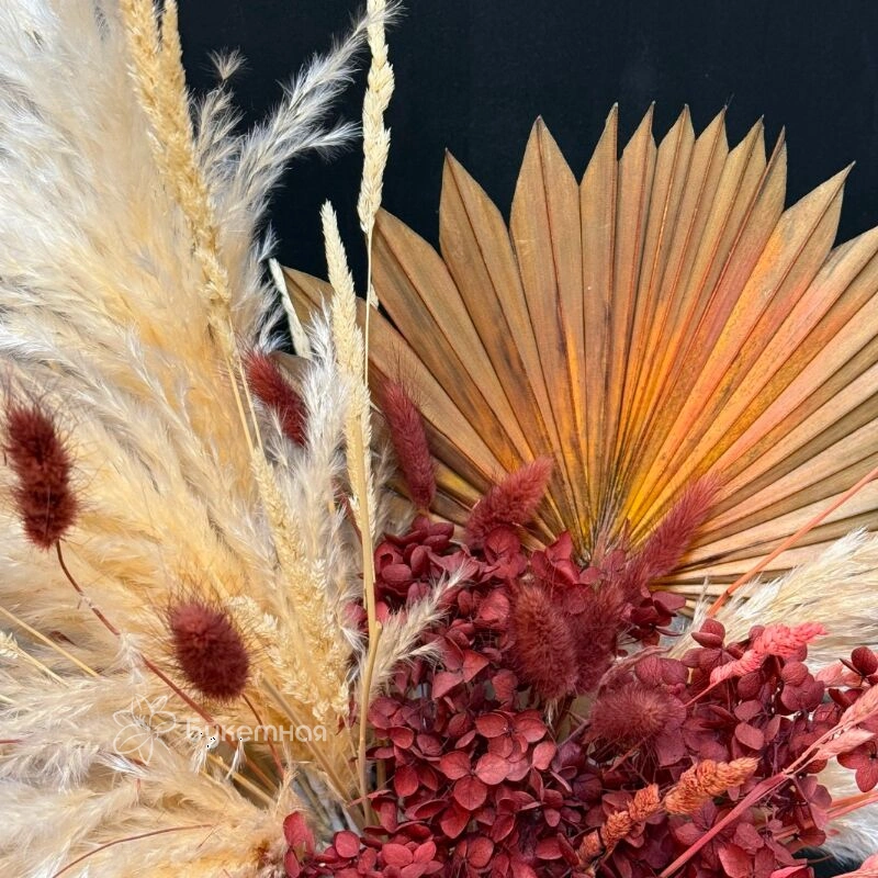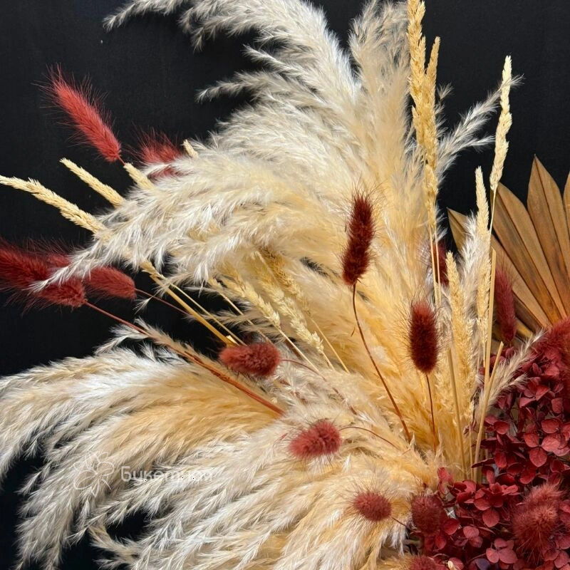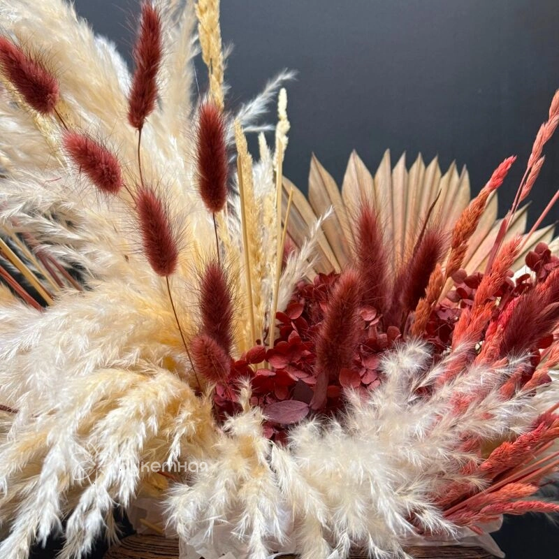 Букет-композиция «Пампаска» — это стильное и уютное решение для оформления интерьера или подарка. В состав композиции входят мягкие, пушистые ветки пампаса, создающие объем и нежность. Этот букет отлично сочетается с другими цветами и элементами декора, подчеркивая их красоту. «Пампаска» добавит природной эстетики и свежести в любое пространство. Композиция выполнена из высококачественных материалов, гарантируя долговечность и сохранение презентабельного вида. Ее можно использовать как самостоятельный акцент или в сочетании с цветами и декоративными элементами. Идеально подойдет для украшения дома, офиса или в качестве подарка на любой повод. Легкая и воздушная, она создает атмосферу уюта и гармонии. Оформите заказ уже сегодня и добавьте нотки природной красоты в ваш интерьер.