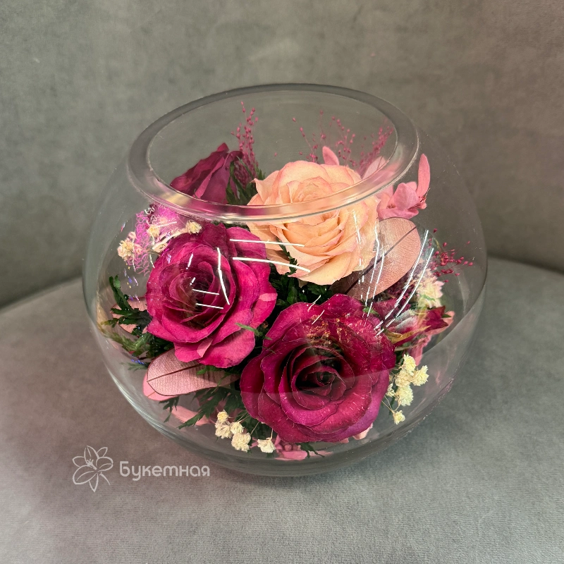 Подарите себе и близким незабываемое ощущение красоты и гармонии с «Феерией чувств». Эта композиция из нежных и ярких стабилизированных роз создает атмосферу любви и восхищения. Его изящное оформление подчеркнет особенность любого праздника или момент важности. Идеальный выбор для выражения чувств и теплых слов без слов. Это отличный подарок для тех, кто ценит красоту и утонченность. «Феерия чувств» подчеркнет ваш стиль и изысканность. Сделайте каждое мгновение незабываемым с помощью этого изумительного букета на долгие года! Срок от 5 лет!