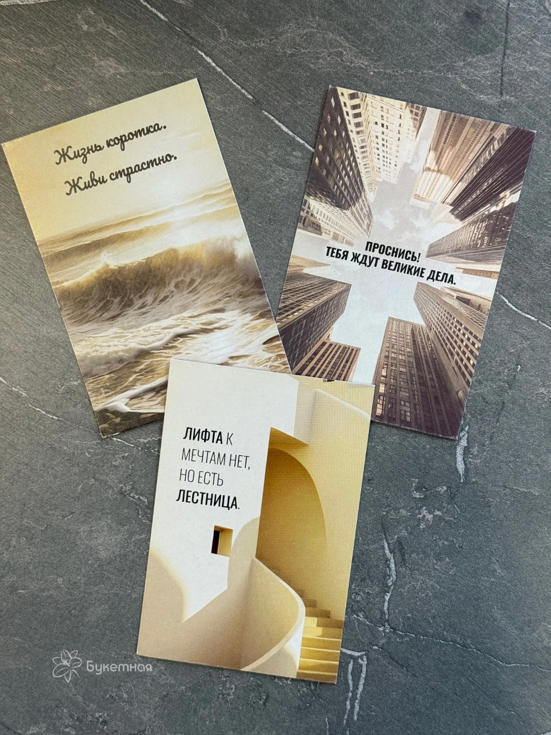 ГлавнаяКаталогПодаркиДизайнерская открытка «Мотивационные»