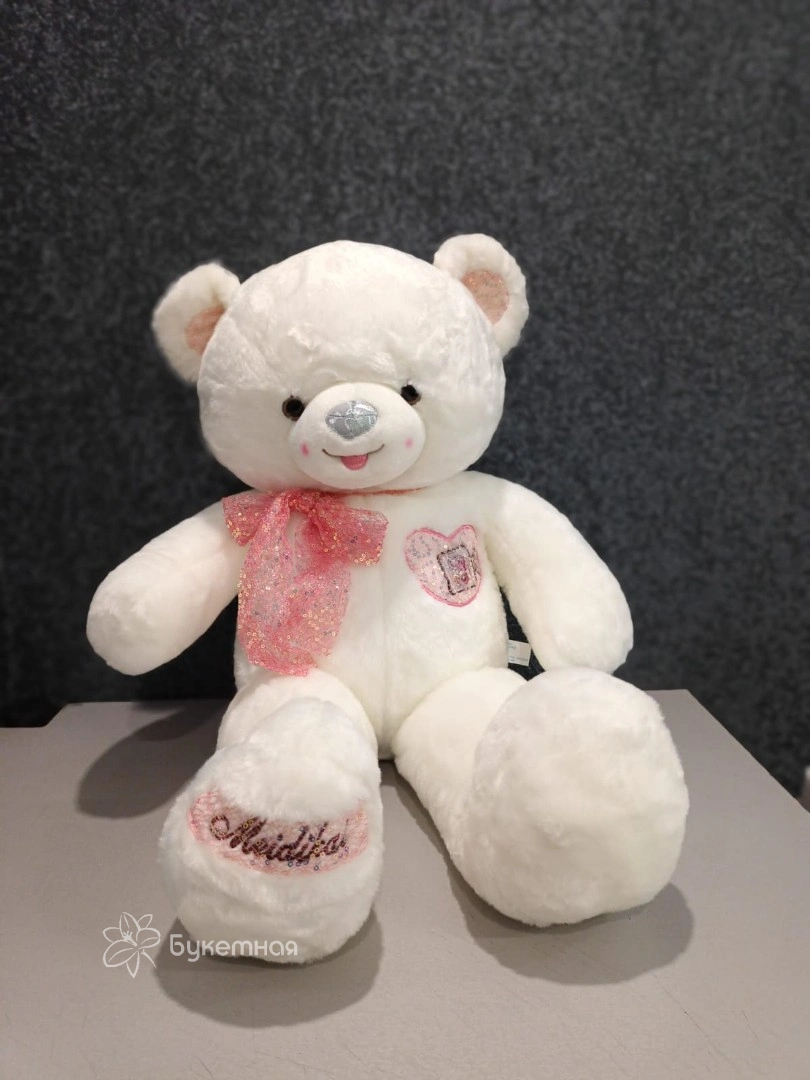 ГлавнаяКаталогПодаркиМедведиМишка белый с розовым бантом