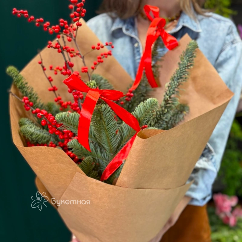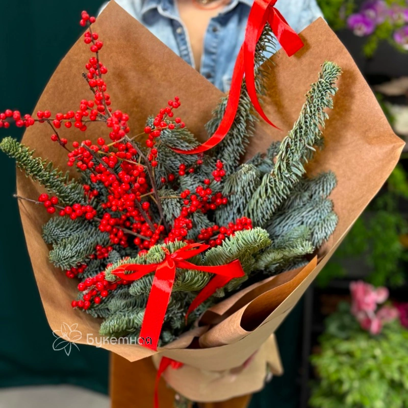 ГлавнаяКаталогБукет «Зимний с нобилисом и илексом»