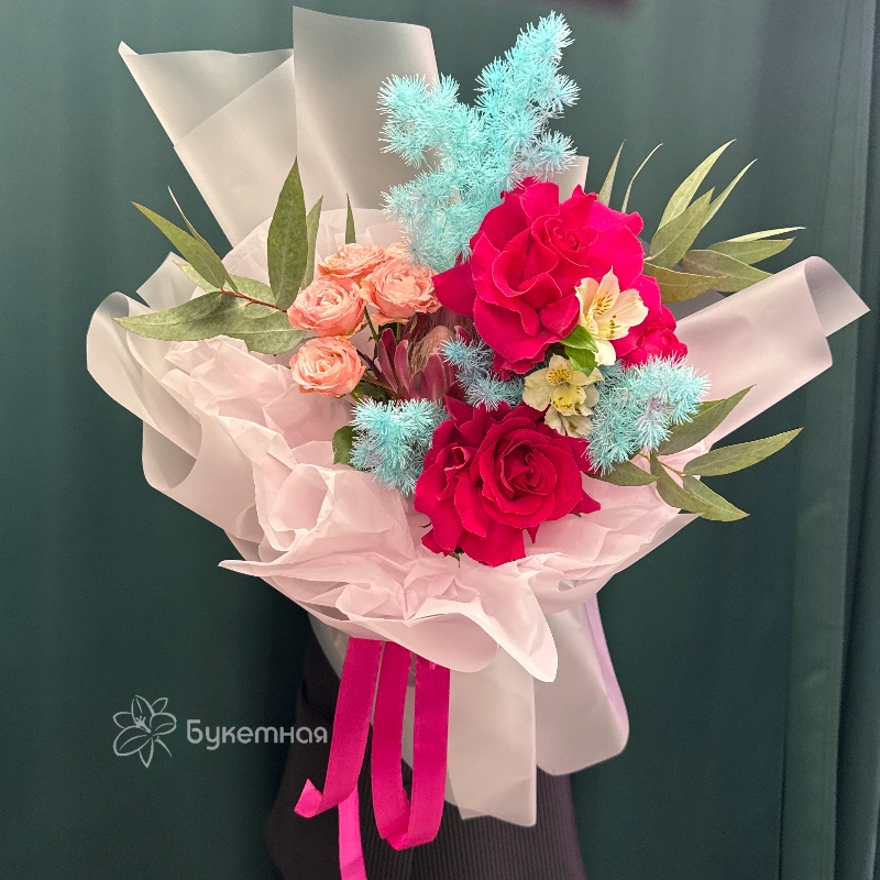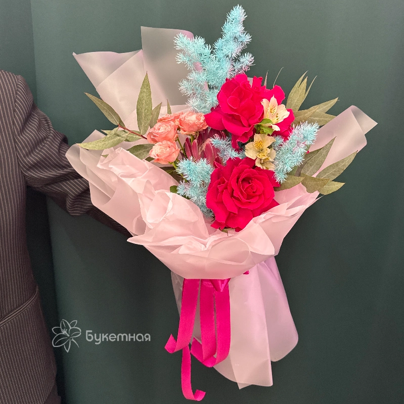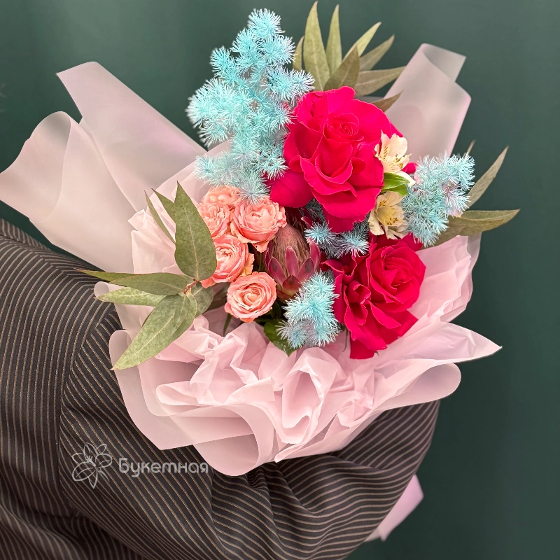 Букет «Лаура» – изящное сочетание природной красоты и элегантности. В его состав входят изысканные сухоцветы, эффектная протея, а также крупные розовые французские розы и кустовые розы. Этот букет отлично подойдет как стильное украшение интерьера или оригинальный подарок. Каждый элемент тщательно подобран для создания гармоничного и уравновешенного ансамбля. Натуральные материалы долго сохраняют свежесть и привлекательность. Букет «Лаура» подчеркнет ваш вкус и добавит уют в любой дом.