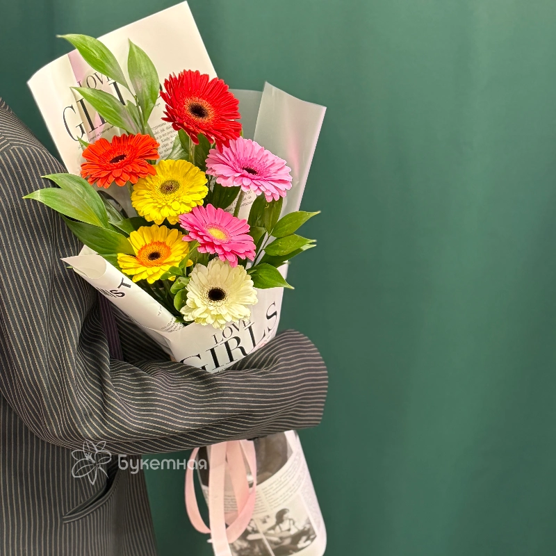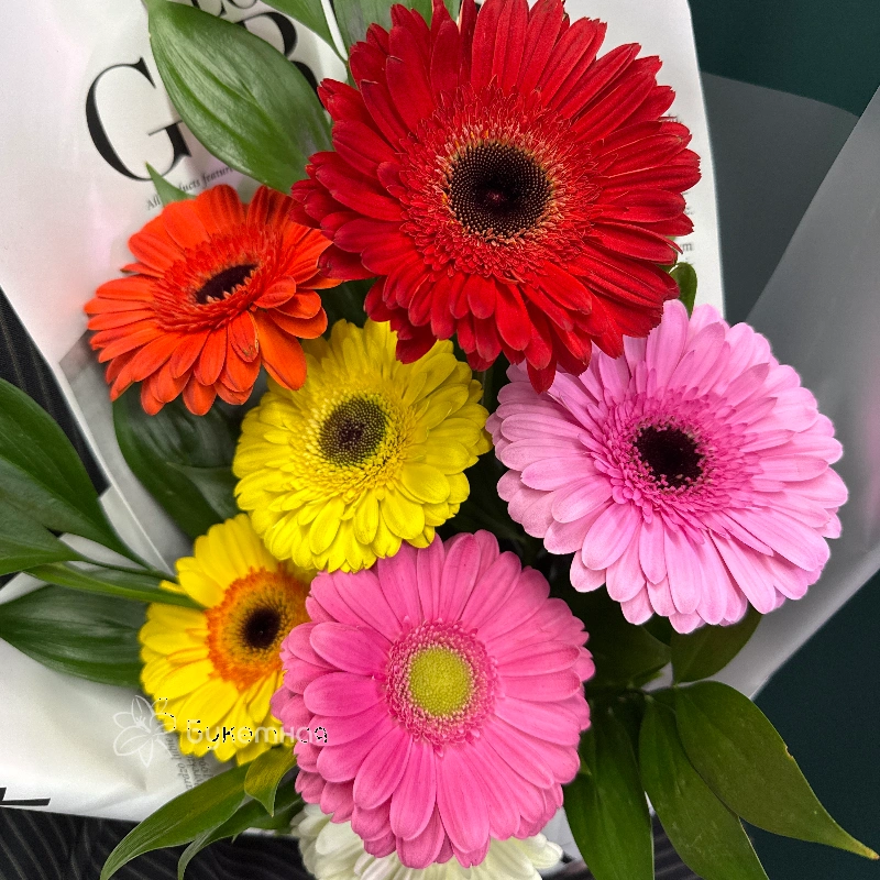 Букет «Герда» сочетает яркость герберы и нежность рускуса, создавая свежий и насыщенный образ. Цветы гармонично дополняют друг друга, подчеркнув его естественную красоту. Это идеальный букет для тех, кто ценит яркие акценты и искреннюю радость. Он отлично подойдет на любой праздник или для выражения теплых чувств.