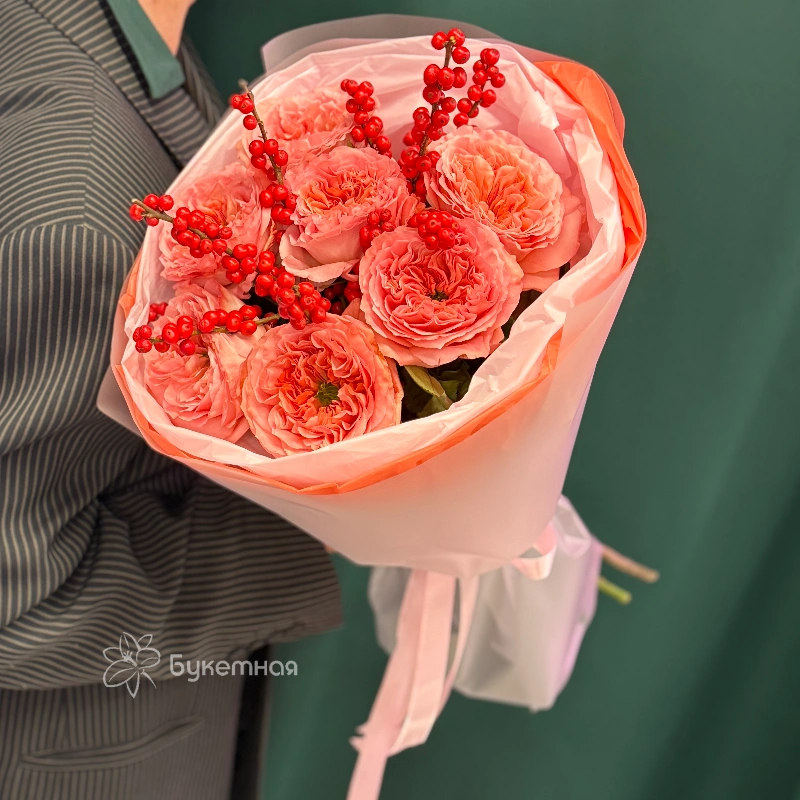 Букет «Мандаринка» — это яркое и настроение, созданное для тех, кто ценит оригинальность. В его составе используются красивые пионовидные розы, которые придают композиции изящность и элегантность. Такой букет идеально подойдет для поздравления и подарка на любой случай. Его насыщенные оранжево-красные оттенки напоминают солнечные мандарины, создавая тепло и уют. Букет тщательно собран профессиональными флористами, чтобы подчеркнуть красоту каждого цветка. Он отлично смотрится как самостоятельный подарок, так и в сочетании с другими композициями. «Мандаринка» долго радует своим свежим и ярким видом, сохраняя привлекательность в течение нескольких дней. Такой букет станет ярким акцентом праздничного стола или уютного интерьера. Подарите себе или близкому человеку каплю солнечного настроения вместе с букетом «Мандаринка». Это отличный выбор для тех, кому важно подчеркнуть свои чувства ярко и необычно.