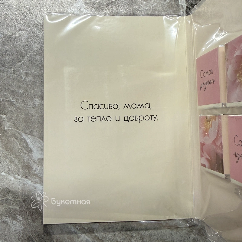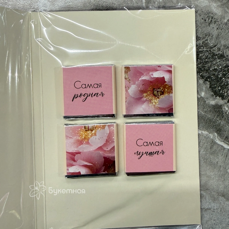 Порадуйте свою маму особенной открыткой-шоколадкой «Самой лучшей маме!!!», которая объединяет сладость шоколада и искренние слова любви. Яркое и трогательное послание сделает любой день незабываемым и наполнит его теплом. Этот уникальный подарок идеально подойдет для любой ситуации и подчеркнет вашу заботу. Подарите маме кусочек счастья в красивой упаковке!