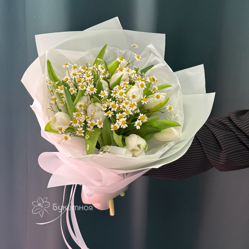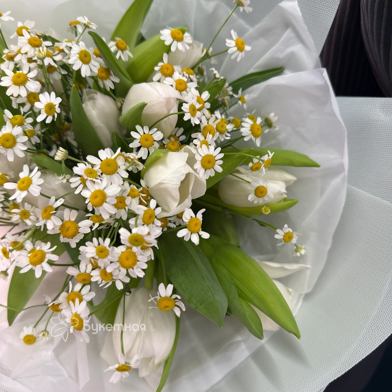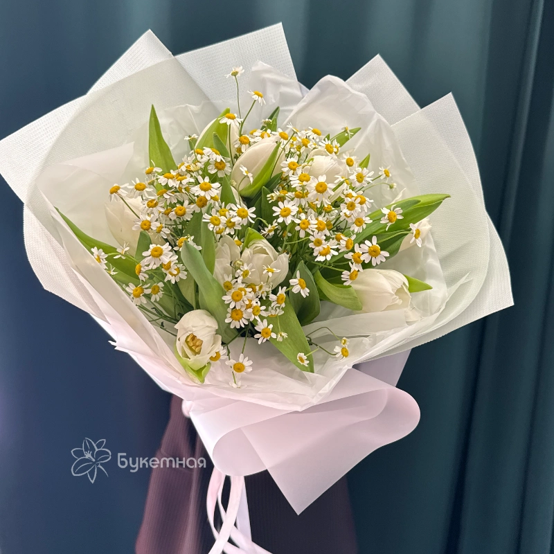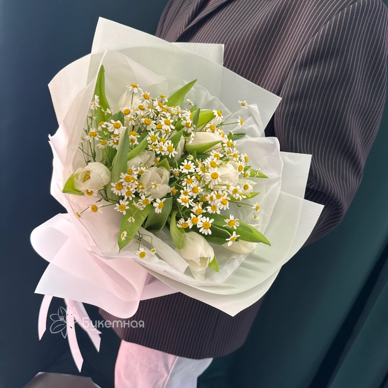 Подарите сказочный настрой с букетом «Люси», в котором сочетаются изящные тюльпаны и бархатистая матрикария. Этот яркий и элегантный букет идеально подойдет для любого повода, подчеркнув вашу заботу и внимание. Создайте особенное настроение и удивите близких красотой природных цветов, выбрав «Люси».