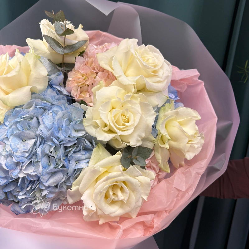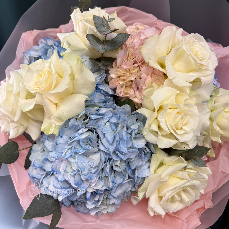 Букет «Сити» — это гармоничное сочетание свежести и элегантности для любого повода. В его составе роскошные французские розы, нежные гортензии и ароматный эвкалипт, создающие уютную и праздничную атмосферу. Идеальный выбор для подарка или украшения интерьера, подчеркнет ваш стиль и индивидуальность. Букет хорошо сохраняет свежесть длительное время благодаря качественным материалам. Он сможет стать ярким акцентом в любой обстановке и оставить приятное впечатление. Купите букет «Сити» и подарите себе или близким частичку красоты и природы.