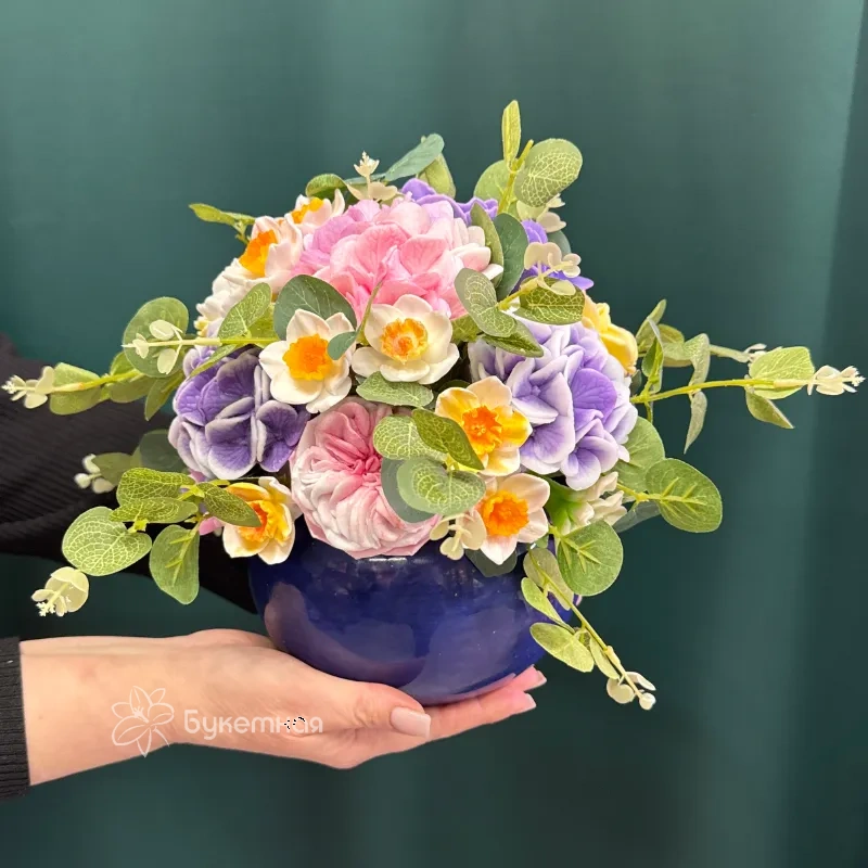 Букет «Музыкальный ангел» — это сочетание нежных цветов, которое порадует любого ценителя красоты. Каждая композиция создана с любовью и вниманием к деталям, чтобы подчеркнуть особенность вашего подарка. В букете использованы яркие цветы из мыла придающие ему воздушность и свежесть. Этот букет идеально подойдет для любого торжества или просто, чтобы поднять настроение близкому человеку. Тонкие оттенки и гармоничное сочетание цветов создают ощущение спокойствия и гармонии. Стильное керамическое кашпо делает его еще более привлекательным. «Музыкальный ангел» станет прекрасным знаком внимания и искренних чувств. Оригинальный дизайн букета подчеркнет вашу индивидуальность и изысканный вкус. Подарите радость и вдохновение с букетом «Музыкальный ангел»!