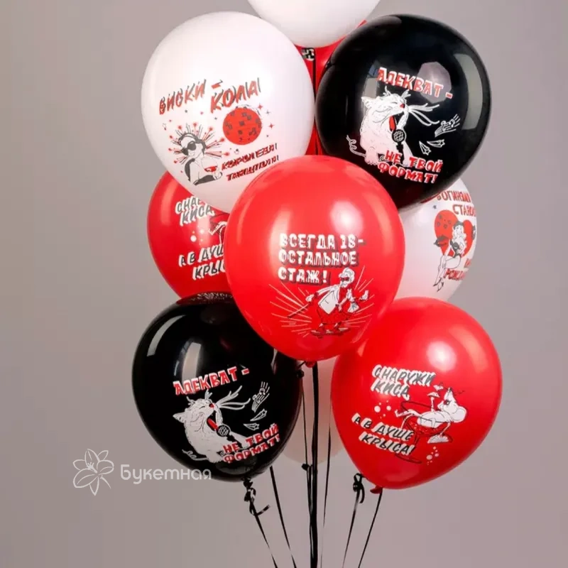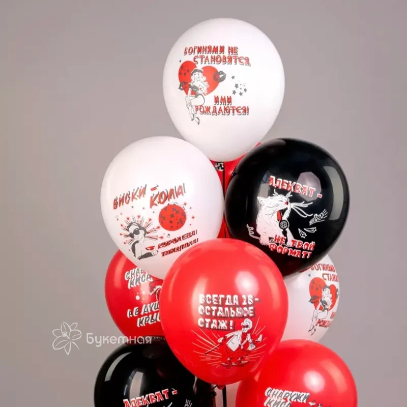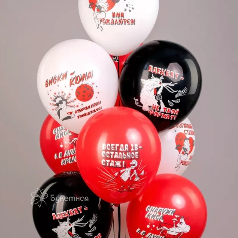 Воздушные шары с прикольными надписями – это отличный подарок для любимого праздника! Они могут быть использованы для украшения дня рождения, 8 марта девичника или другого праздника. Однотонные шары диаметром 30 см в красном, чёрном и белом цвете украшены приятными надписями и весёлыми пожеланиями, приколами и красивым принтом. Вы можете подарить любимой девушке букет из Шаров, а можете украсить помещение к её приходу. Создать оригинальную воздушную арку, связать шары в виде гирлянды или растяжки для фото зоны или фон, украсить стену или потолок. Стильная ассорти из разноцветных гелевых Шаров в ярком декоре с прикольным рисунком украсить дом или квартиру, зал или гостиную. Большие и красивые шары обрадуют не только вашу девушку или сестру, они станут сюрпризом для взрослой женщины, например, подруги, девушки плюс подростка, приятным знаком внимания и подарочным вариантом для дня рождения или юбилея, корпоративов, вечеринку, просто так без повода!