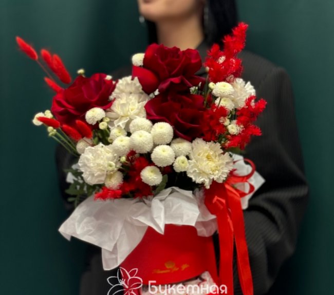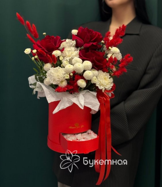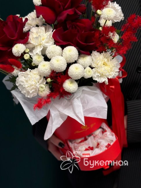Описание Невероятно красивая композиция в шляпной коробке из французских ажурных роз, хризантем и диантус расскажет о Ваших чувствах без единого слова
