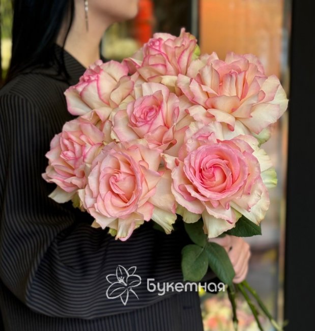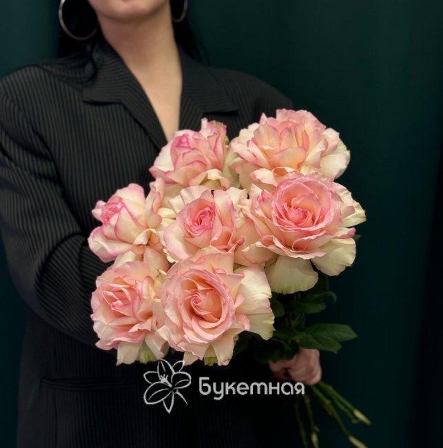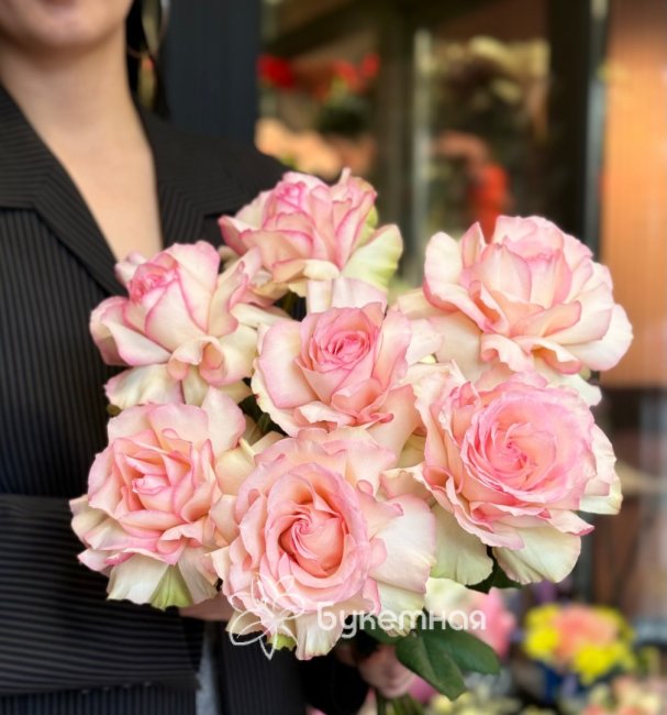 Описание Каждая роза раскрывается в пышный бутон с переливами розового оттенка, создавая атмосферу нежности и изысканности.