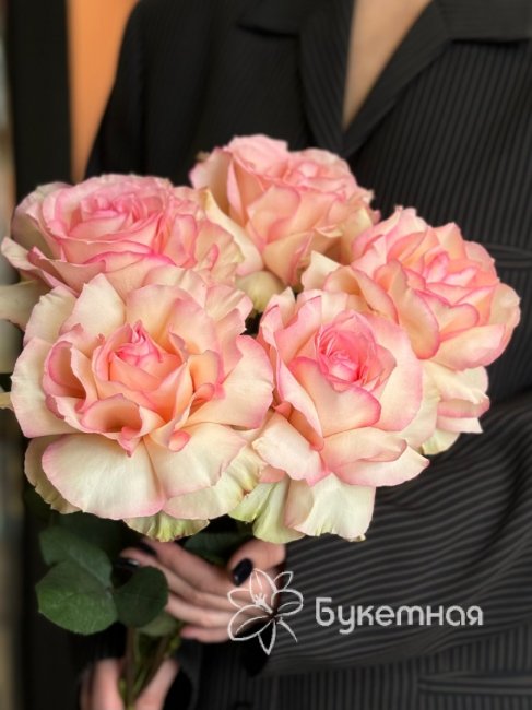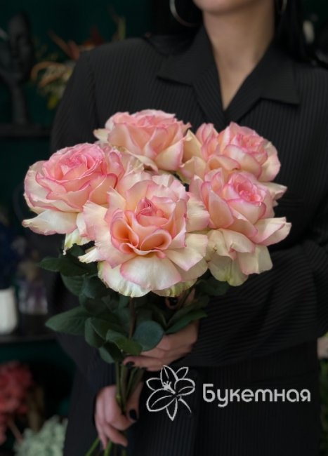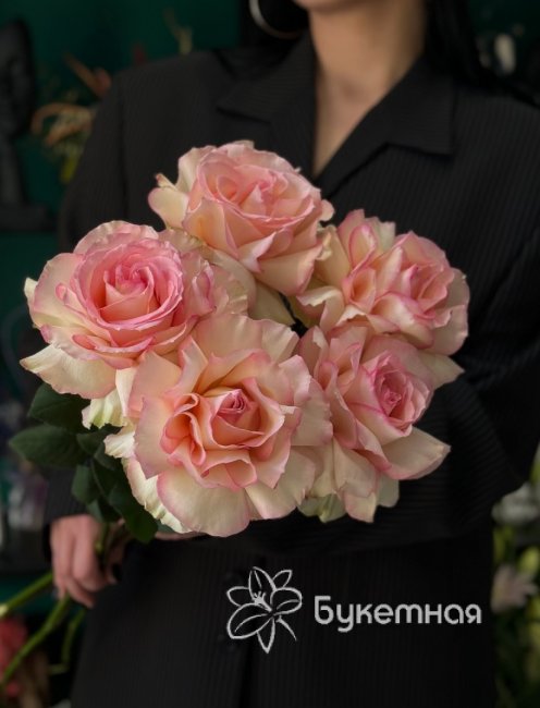 Описание Каждая роза раскрывается в пышный бутон с переливами розового оттенка, создавая атмосферу нежности и изысканности.